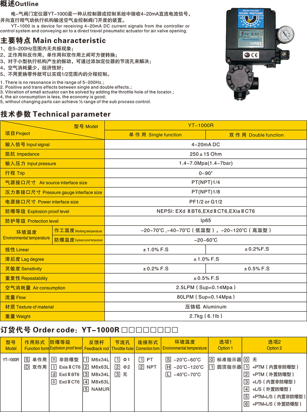 其與氣動調節閥配套使用,構成閉環控制回路。把控制系統給出的直流電流信號轉換成驅動調節閥的氣信號,控制調節閥的動作。同時根據調節閥的開度進行反饋,使閥門位置能夠按系統輸出的控制信號進行正確定位。